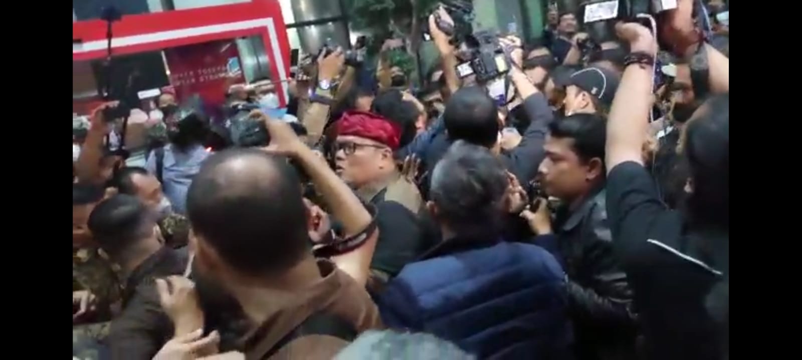 Pantauan di lapangan, insiden itu berlangsung saat Anies yang baru selesai diperiksa memberikan keterangan pers kepada awak media di depan Gedung KPK.