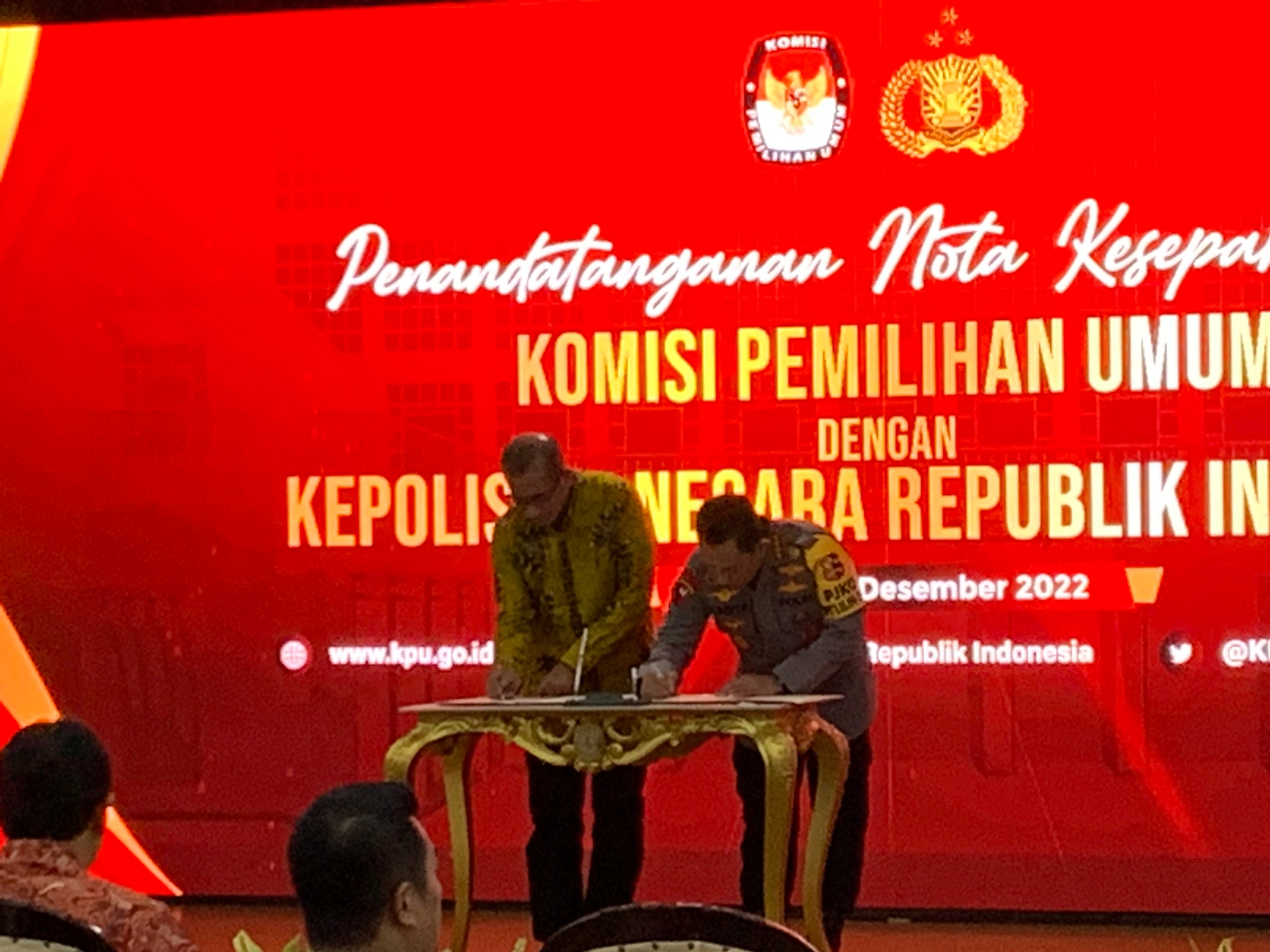 “Pada hari ini, Kamis 29 Desember 2022, di ujung 2022, KPU menyelenggarakan kegiatan berupa penandatanganan nota kesepahaman antara KPU dengan Polri, terutama dalam rangka kerjasama untuk pengamanan kegiatan kepemiluan,” kata Ketua KPU RI Hasyim Asy’ari, hari ini (29/12/2022).