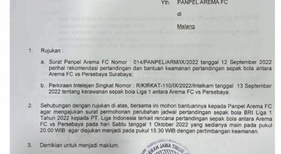 Fakta Terbongkar! Polisi Minta Percepatan Laga Arema vs Persebaya Atas Masukan Intelijen, Tak Digubris PanitiaNasional|October 2, 2022by superadminJatim – Tragedi Kanjuruhan Malang yang menewaskan 127 orang setelah laga Arema